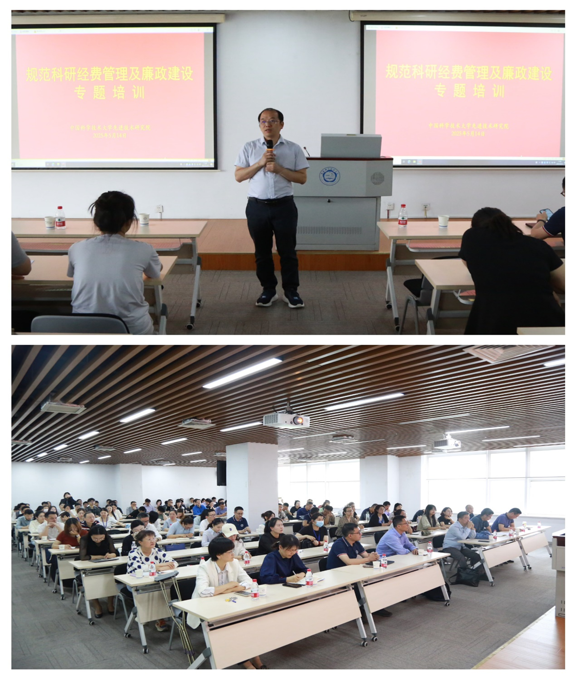 为强化科研经费规范使用意识,筑牢党风廉政建设防线,5月14日上午9点,科技成果转化院、先进技术研究院(以下简称“先研院”)和资产经营有限责任公司在先研院未来中心B414教室开展规范科研经费管理及廉政建设专题培训。科技成果转化院党支部、科大资产公司直属党支部党员,先研院全体工作人员、全职科研人员、各科研项目负责人及科研助理等150余人参加培训。培训会由先研院副院长张岚主持。